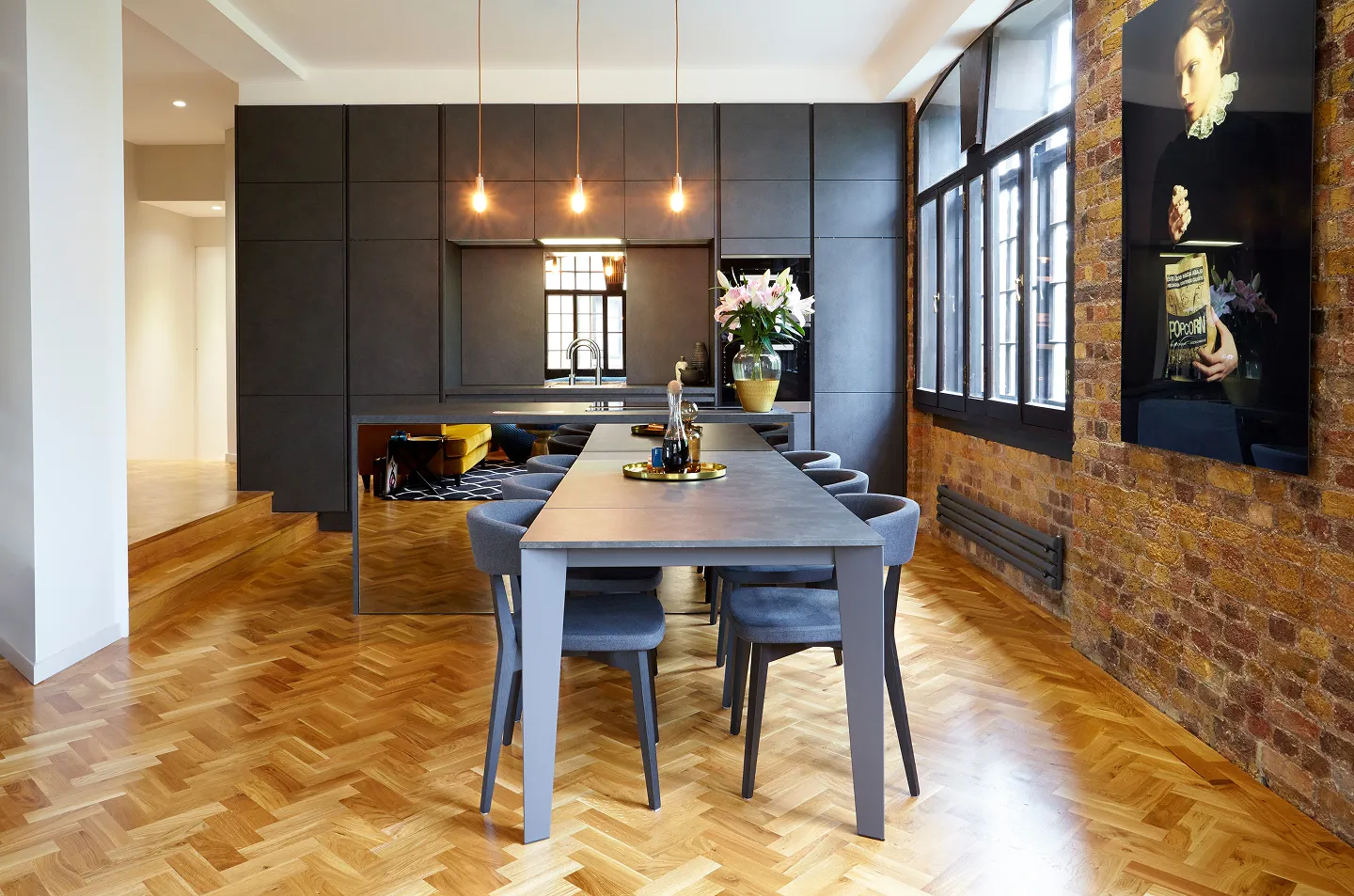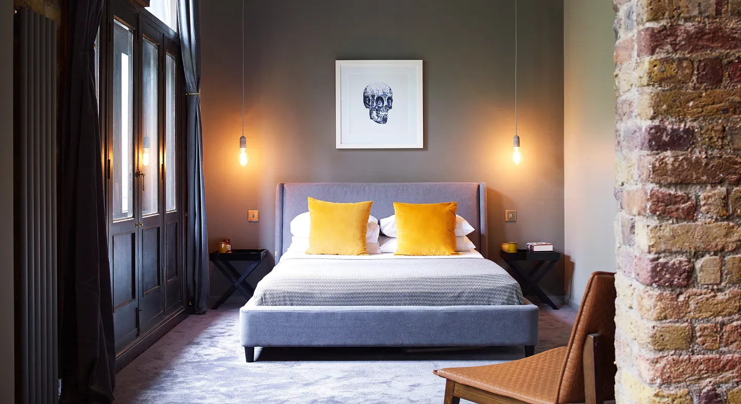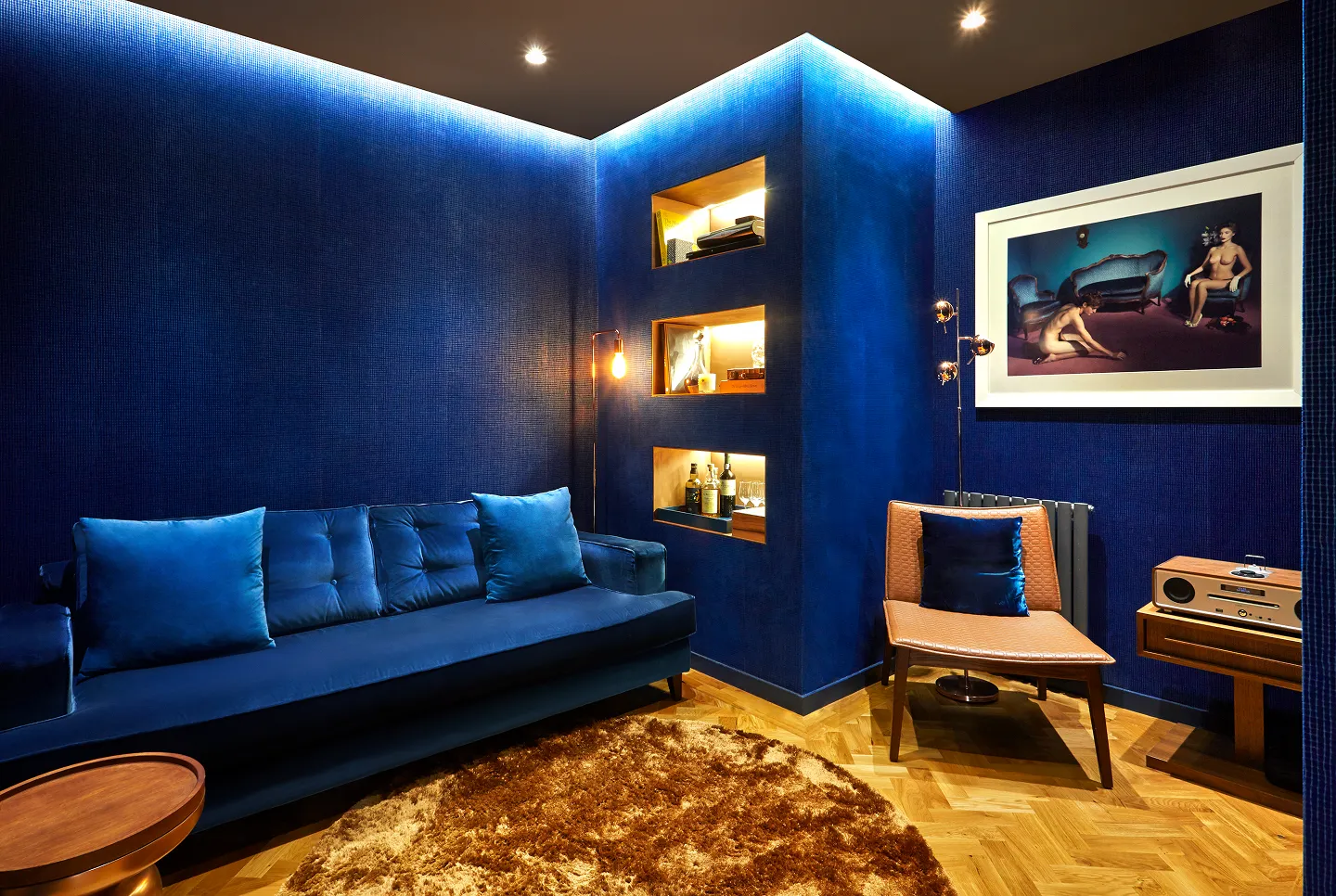 Drawing on its iconic industrial heritage, the new design juxtaposes exposed brick and brass fittings with deep blue velvet and vibrant accents, resulting in a distinctive home that is both sophisticated and full of character.