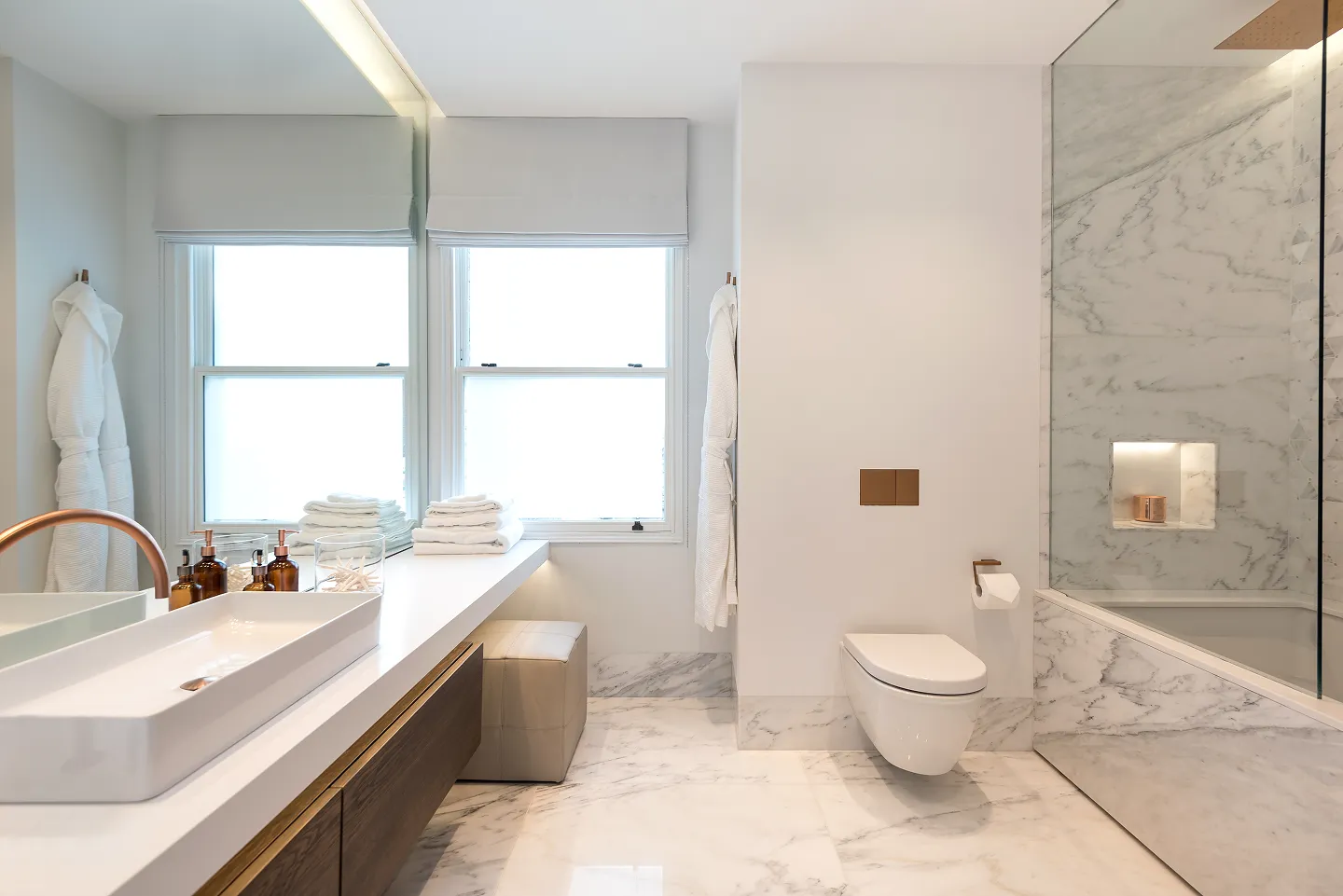 Light was a key feature using large period windows to enhance the natural light throughout the house; while the use of timber floors and marble surfaces were used to create a sophisticated, timeless, and contemporary design throughout the five floors finished with a beautifully restored, period staircase.