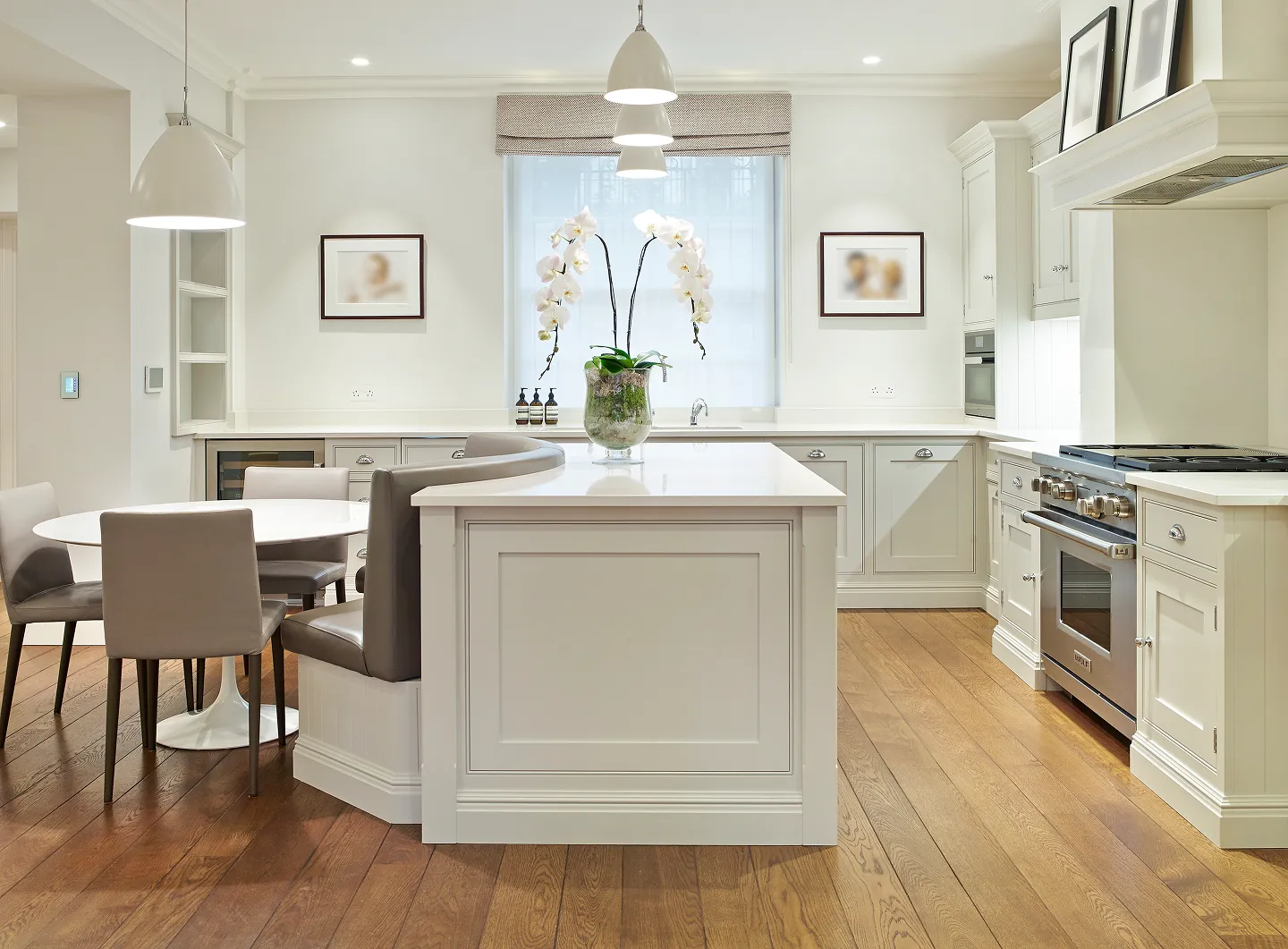The refurbishment features a light, airy colour palette throughout, while original elements such as the timber flooring, floor tiles, plasterwork, and iron handrail were carefully restored. Built-in joinery was designed to complement the period of the house, with contemporary touches introduced through the client’s art collection.
